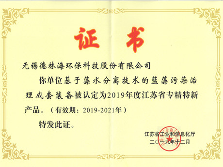 喜訊:我司的“基于藻水分離技術(shù)的藍(lán)藻污染治理成套裝備”入選江蘇省專(zhuān)精特新產(chǎn)品
